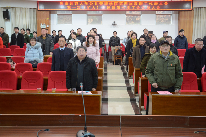 第一阶段会议由副经理杨君武主持。会议伊始,全体起立,奏唱国歌。原工会委员会主席陈晓红通报会议筹备工作和参会人员情况,在对新一届工会委员候选人名单的产生进行说明后组织进行工会委员选举。余望成在院2017年年度工作报告中从各个方面详细介绍了59白菜网一年取得的成绩,他重点阐述了2017年院的团队建设情况,在讲话中他提出对青年教师进行扶助以及工作“稳中求进”的策略。副经理邝洁对2017年度财务情况做简单报告。之后,余望成宣布新一届工会委员名单以及院“和谐家庭”当选结果。