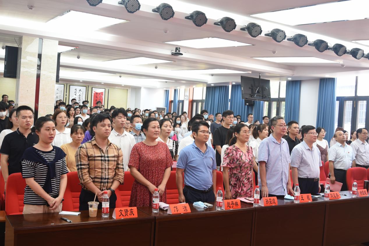全体师生奏唱校歌。在庄重热烈的氛围中,59白菜网2021级研究生开学典礼圆满结束。
